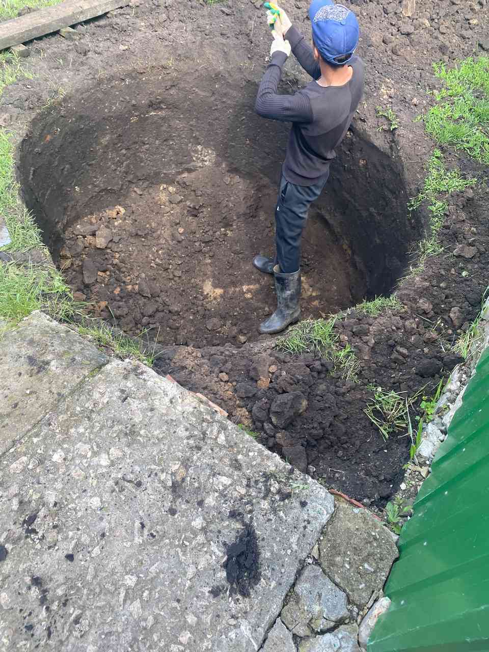 22.05.2025 копка руками 2 чел. ямы под септик на улице: 4 кольца 1.5м + крышка + доборное кольцо 30см + люк = 56500р. (если кольца 1м и без добора, то 30тр.)