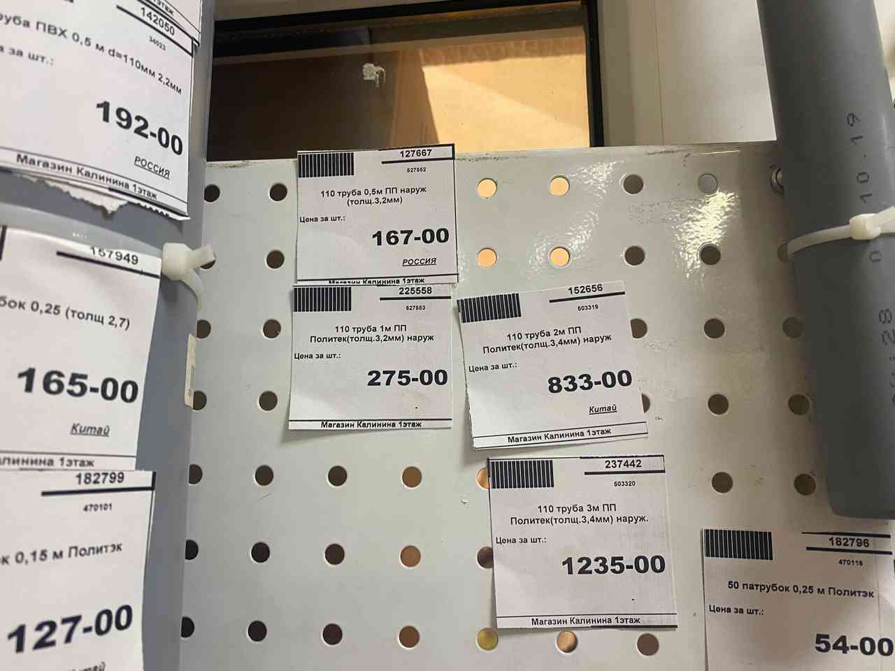 "Мой дом" ул. Калинина: на 6912р., вкл 110 рыжая труба 5 шт. на 6175р. и разное.