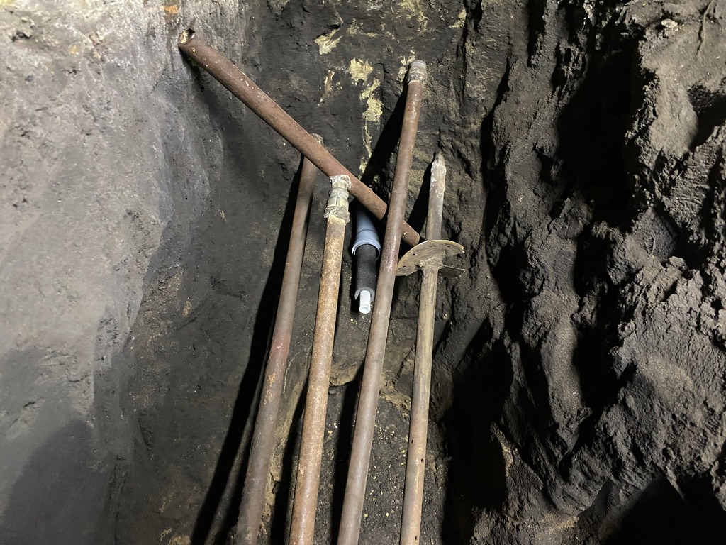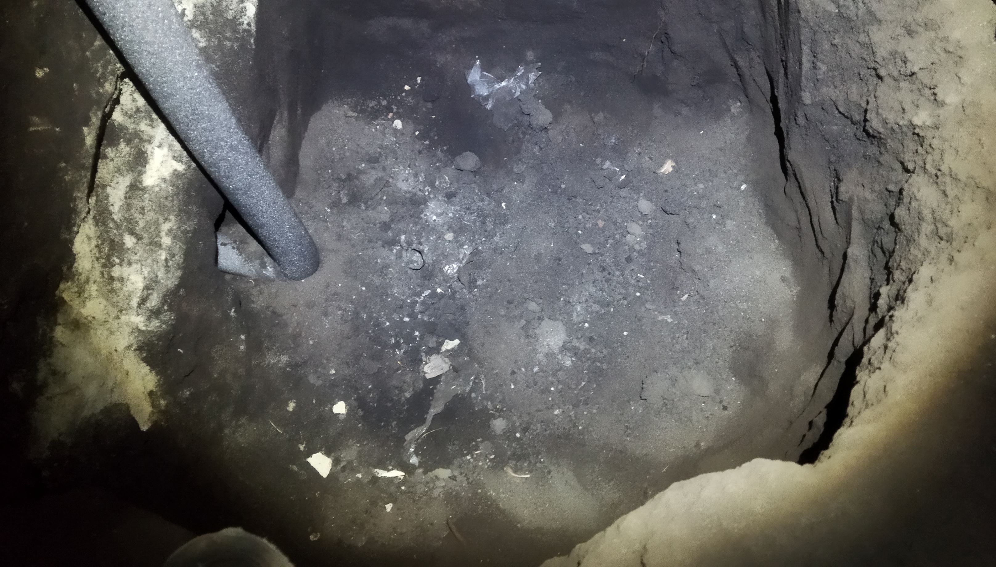Бурим с Лешей дыру 10см между домами 25 и 25а под асфальтом около 3,75м глубина 0,8м из подпола д.25