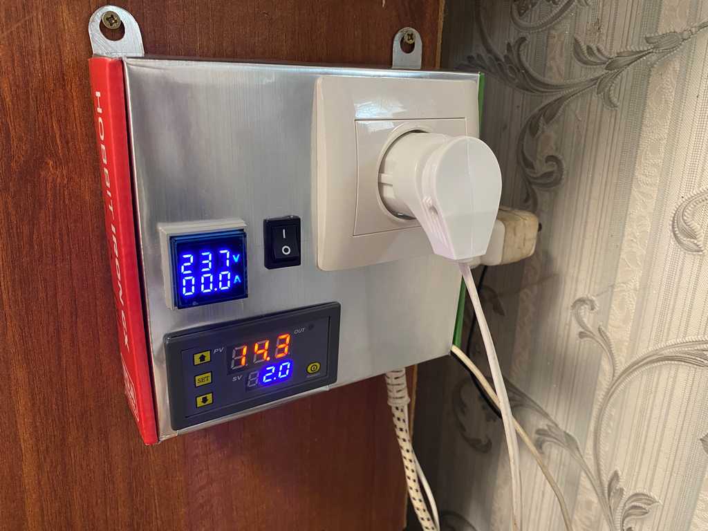 Для регулирования температуры использую Терморегулятор w3230 с терморезистором 10 кОм, висит на стене в комнате, датчик температуры NTC 10k на самой холодной части трубы на глубине 0.7м между домами под дорожкой.